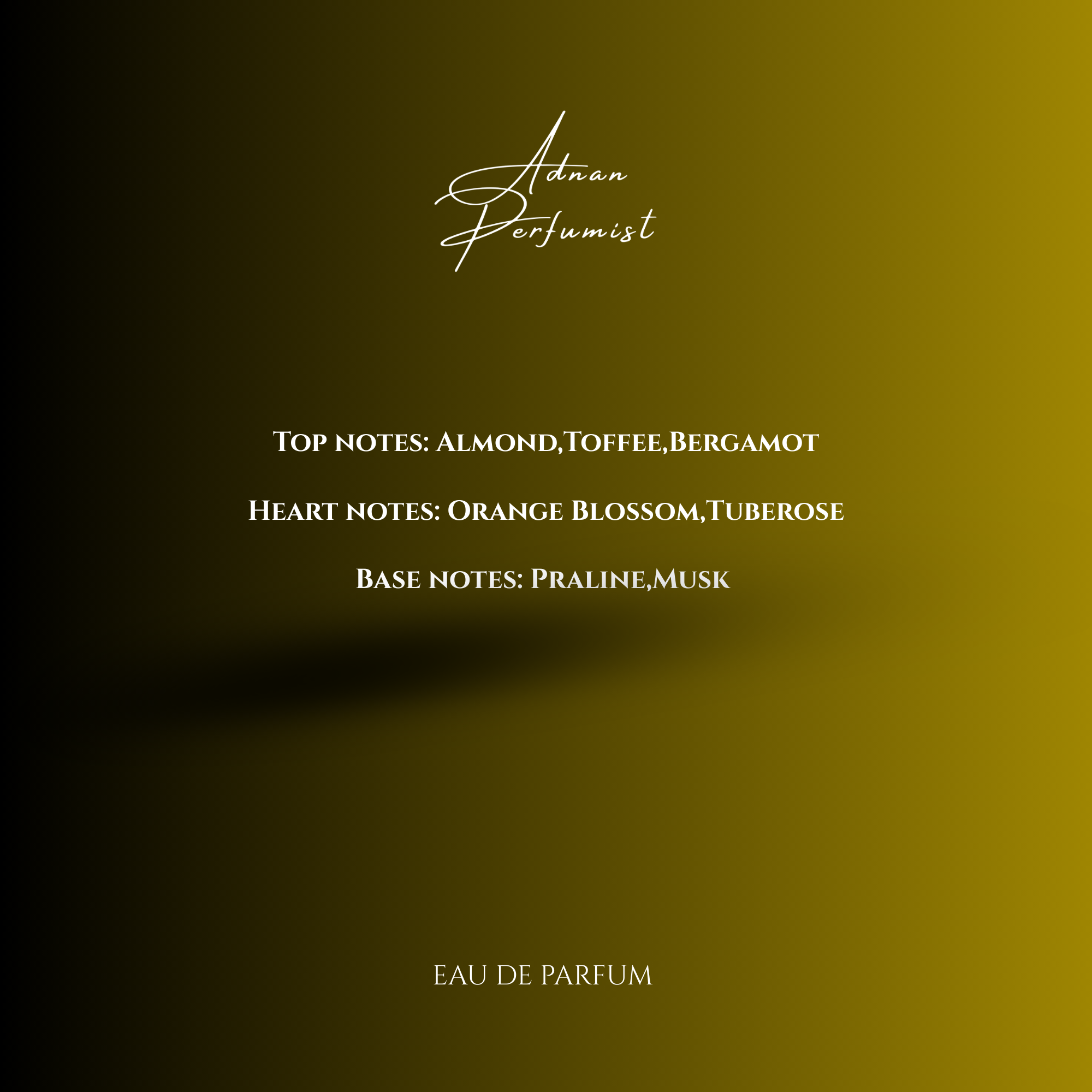 It opens with the smooth richness of Almond and Toffee, brightened by a fresh touch of Bergamot. At the heart, delicate Orange Blossom and creamy Tuberose add a soft floral elegance that feels both radiant and feminine.